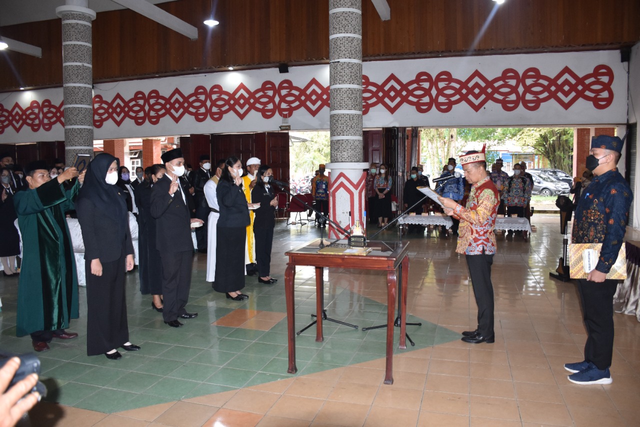 KUALA KAPUAS – Sebanyak 218 pejabat fungsional di lingkungan Pemerintah Kabupaten Kapuas dilantik dan diambil sumpah/janji oleh Bupati Kapuas Ben Brahim S Bahat, di Aula Sekretariat Daerah Kabupaten Kapuas, Kamis (12/1) siang.
