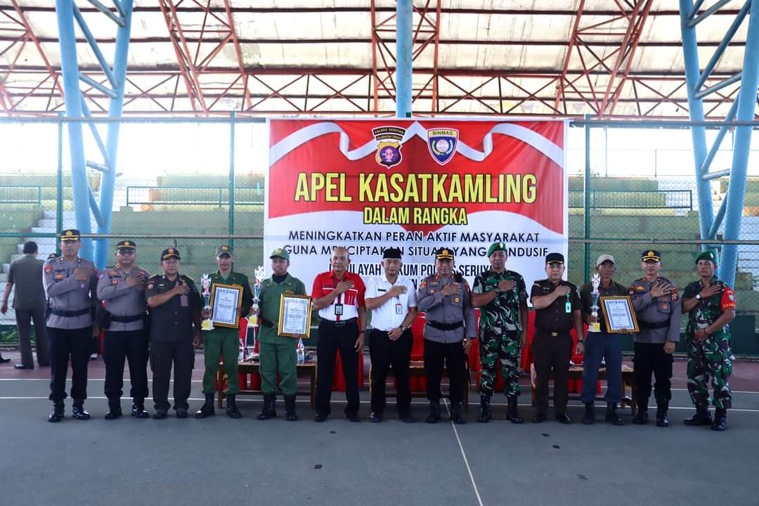 KUALA PEMBUANG- Asisten III atau Administrasi Umum Serta Seruyan, H Sugian Noor menghadiri Apel Kasatkamling Tahun 2023, di Lapangan Tenis Indoor, Rabu (21/6).