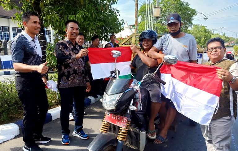 “Tujuan dari pembagian bendera Merah Putih ini tidak lain adalah untuk menambah kecintaan kita selaku masyarakat Indonesia akan cinta tanah air dan bangsa indonesia,” kata Wabup Sugianto Panala Putra membacakan sambutan Bupati H Nadalsyah.