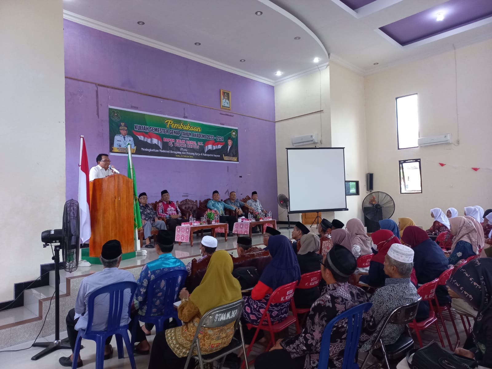 KUALA KAPUAS- Pj Bupati Kapuas Erlin Hardi menjadi narasumber pada pembukaan Kuliah Semester Genap tahun akademi 2023-2024 dengan tema “meningkatkan moderasi beragama dan peluang kerja di kabupaten kapuas” bertempat di Auditorium STAI Kuala Kapuas, Sabtu (24/02/2024) pagi.