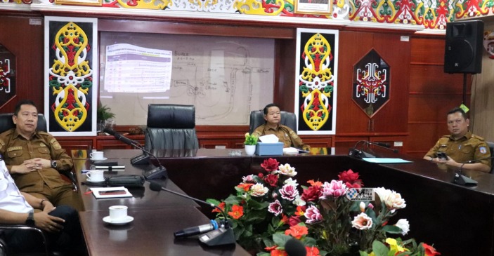 PURUK CAHU – Pemerintah Kabupaten (Pemkab) Murung Raya (Mura) yang diwakili oleh Asisten II Setda Kab.Mura, Yulianus, serta pejabat terkait mengikuti Rapat Koordinasi (Rakor) Pengendalian Inflasi Daerah dan Progam 3 juta Rumah secara virtual Zoom Meeting bertempat Aula A kantor Bupati Mura, Senin (14/7/2025).