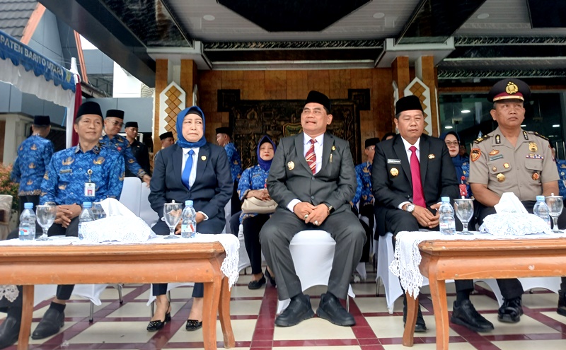 Muara Teweh – Senin 1 Desember 2025, Ketua DPRD Kabupaten Barito Utara, Hj. Mery Rukaini, menghadiri upacara peringatan Hari Ulang Tahun ke-54 Korps Pegawai Republik Indonesia (KORPRI) yang dipimpin langsung oleh Bupati H. Shalahuddin di halaman Kantor Bupati. Upacara tersebut sekaligus diisi pembacaan sambutan Ketua Umum DPP KORPRI Nasional, Dr. Zudan Arif Fakrulloh, oleh Bupati. Momentum ini menjadi refleksi atas perjalanan panjang KORPRI yang telah mengabdi lebih dari setengah abad untuk bangsa dan negara.