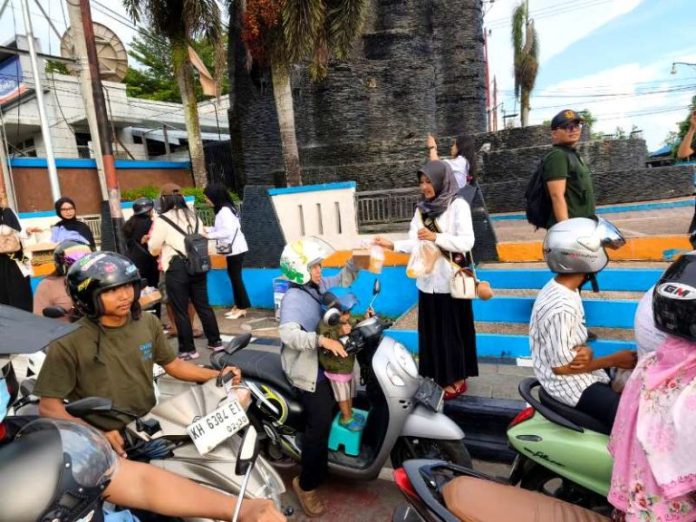 Sebanyak 100 paket takjil dibagikan kepada masyarakat. Para peserta kegiatan tampak antusias berinteraksi dengan warga yang menerima takjil. (Red)