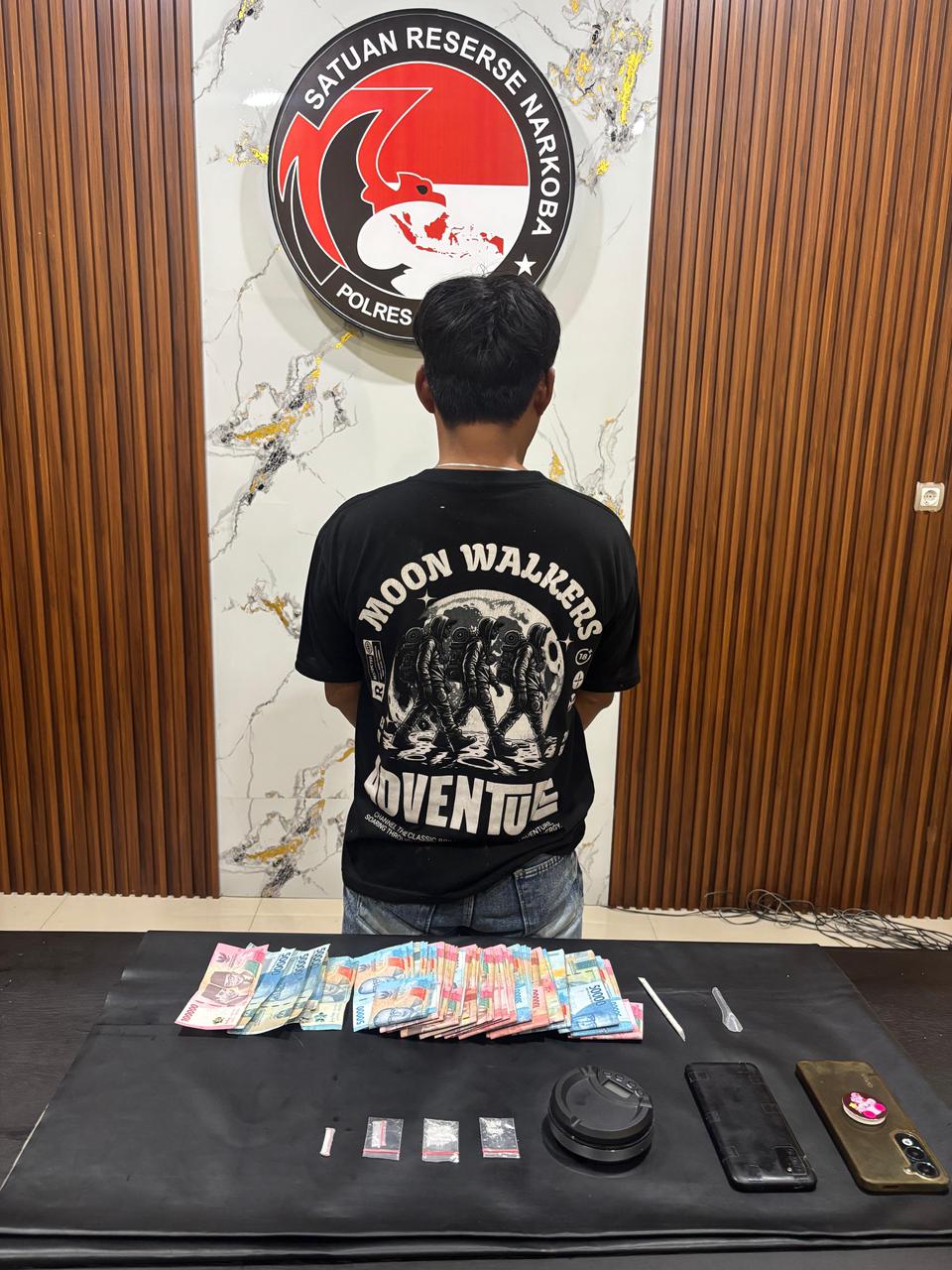 “Meski sempat tidak mengakui perbuatannya, namun dari fakta – fakta yang kami temukan terduga tidak dapat mengelak lagi. Penggeledahan kendaraan dan rumah yang dilakukan disaksikan langsung oleh Ketua RT setempat dan berhasil menemukan 6 paket Narkotika jenis Sabu – Sabu dengan berat kotor 26,88 gram beserta barang bukti lain yang berkaitan dengan tindak pidana Narkotika.”, jelas Kasat Resnarkoba.